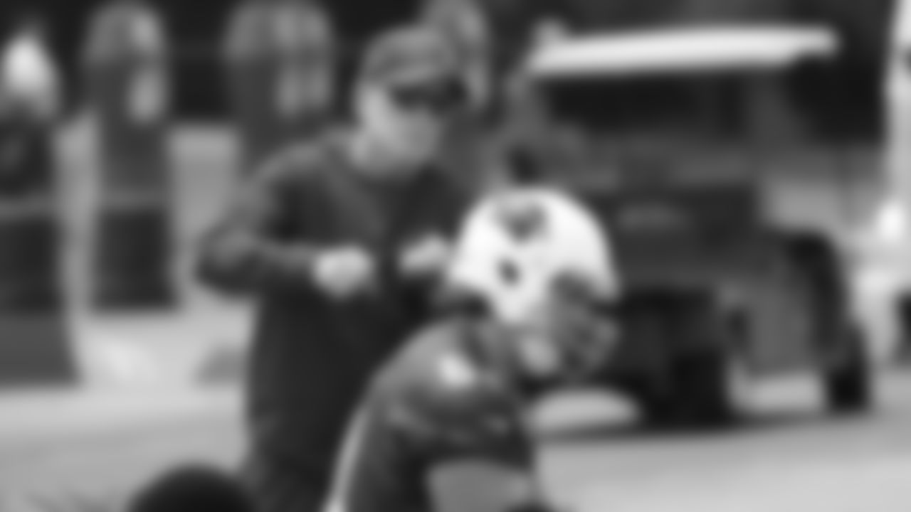 OL coach Sean Kugler teaches some of the finer points of line play.