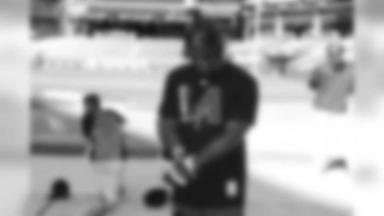 Images of Cardinals running back David Johnson taking batting practice and throwing out the first pitch at Chase Field